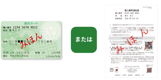 - ❸通知カードまたは個人番号通知書 + A×1点